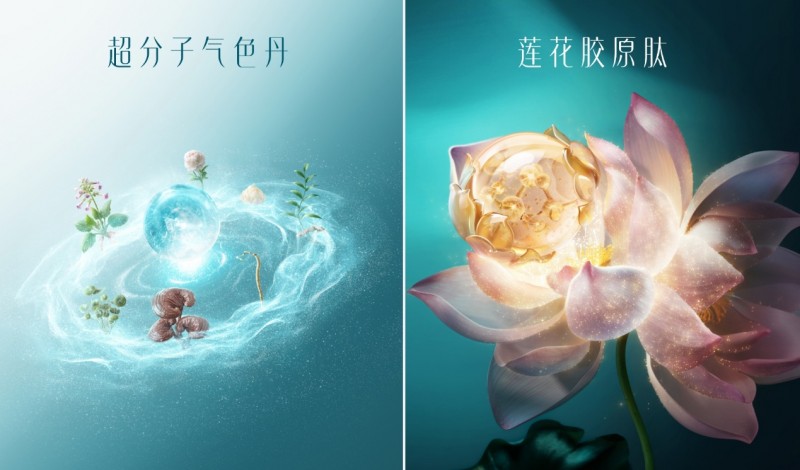 花西子气色双生护肤系列核心技术:超分子气色丹、莲花胶原肽