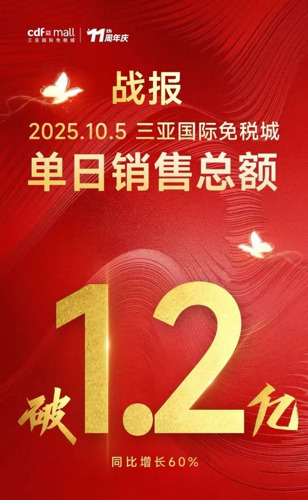 中免三亚国际免税城单日销售额破亿 以“免税+”打造品质黄金周