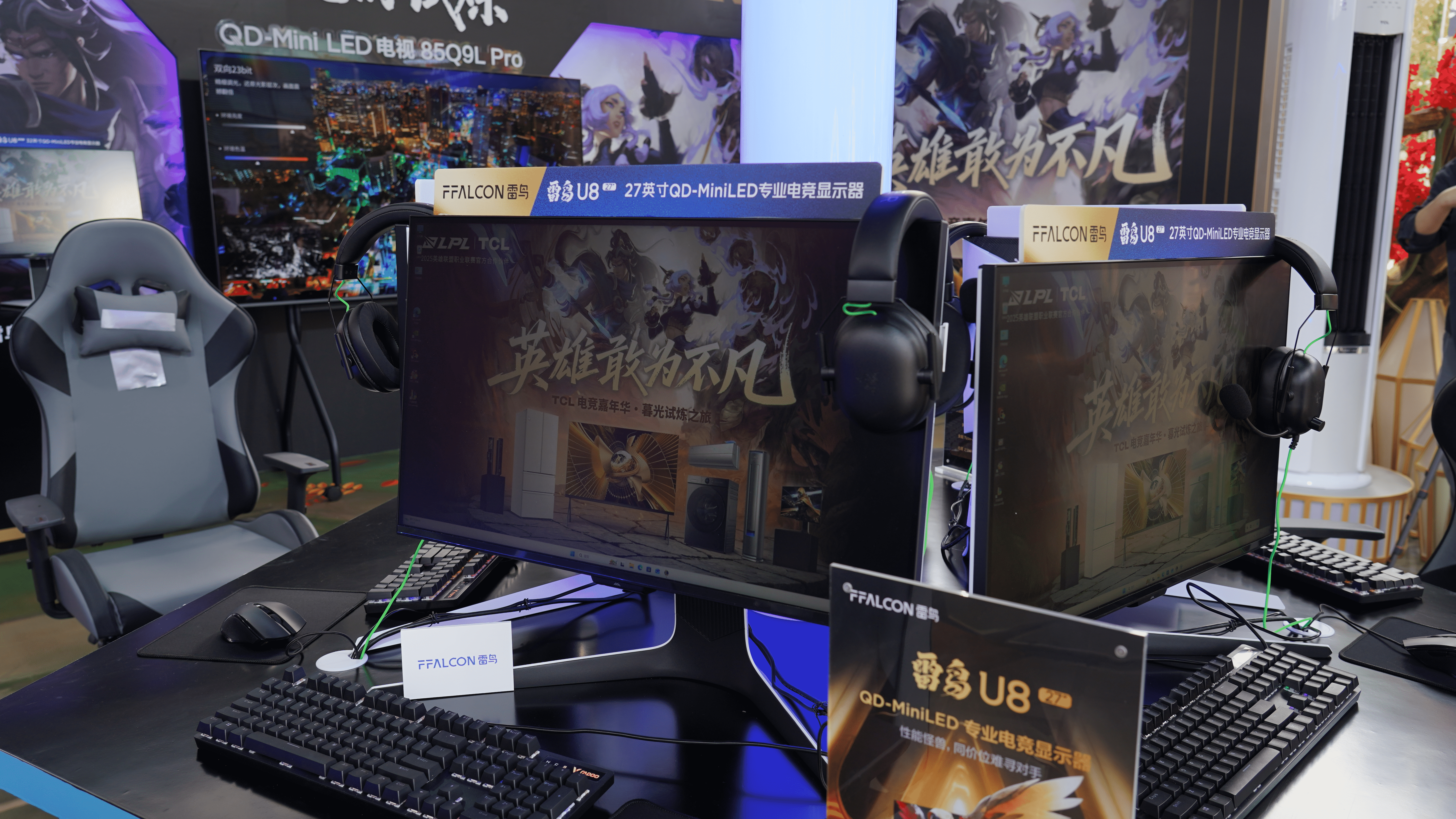 在S赛观赛区,四面雷鸟巨屏环绕搭建沉浸式观赛空间,实时同步总决赛战况;而在“盟友竞技区”,20台具备300Hz超高刷新率的雷鸟F6显示器组成开黑战场,助力玩家在海克斯大乱斗中实现操作零延迟;而雷鸟显示器的展区更是设立了27U8体验区,让玩家直观感受高画质的游戏体验。