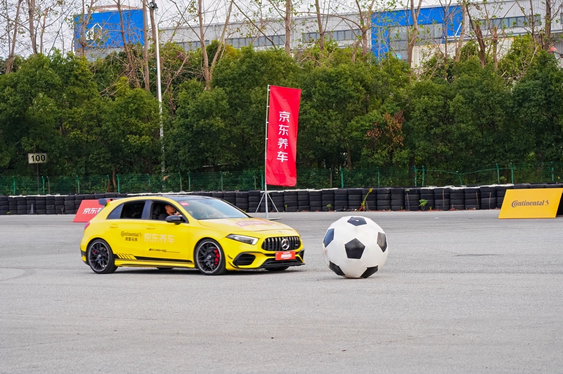 10月27日,上海天马赛车场,一台高性能赛车在引擎的轰鸣中划出完美弧线,以近乎临界姿态完成甩尾截停,保险杠精准切中足球轨迹,在轮胎与地面的尖啸声中完成一记势大力沉的抽射,足球应声入网。这记特殊的“射门”,正是京东养车11.11赛道日上演的精彩一幕。