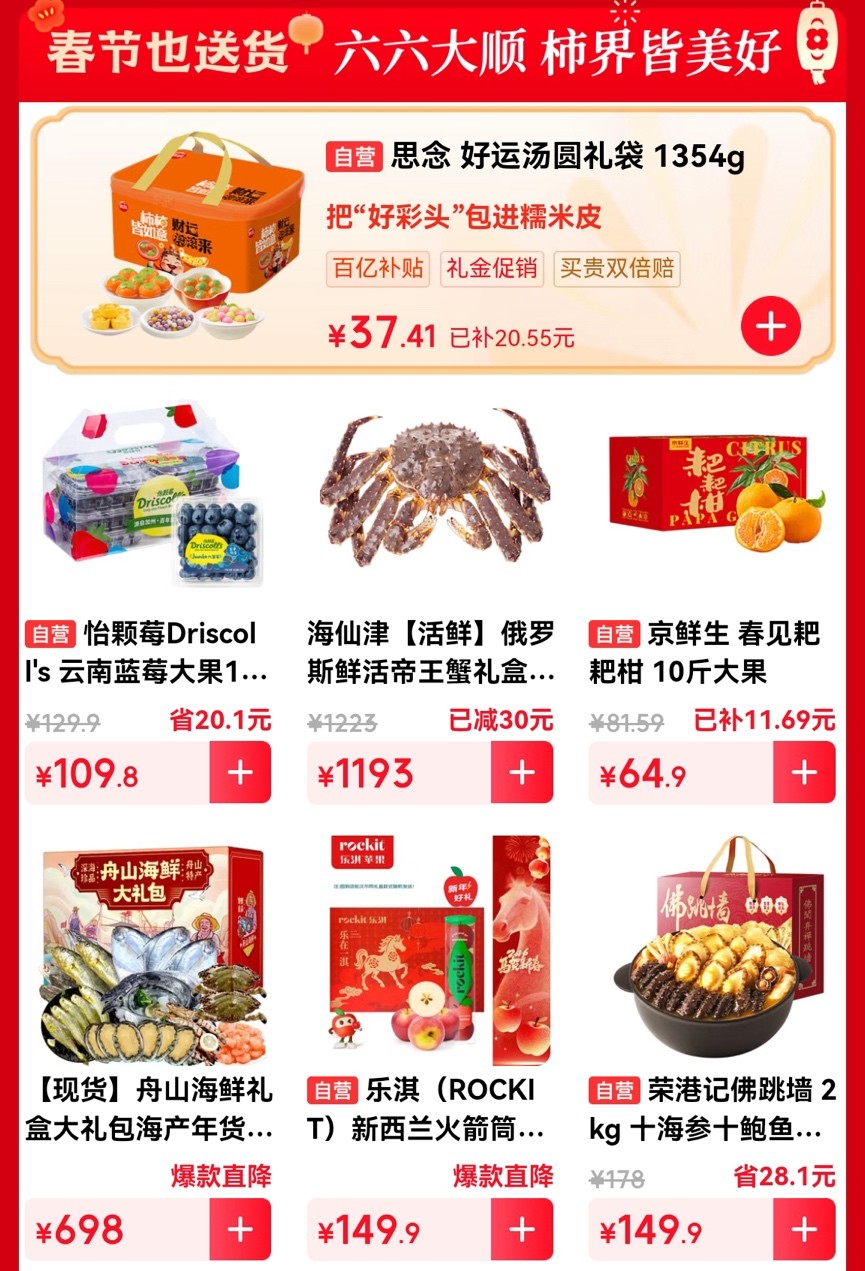 从高端海鲜到养生食材,从经典水果到小众鲜果,京东生鲜以“真鲜真便宜”的初心,以超级供应链的实力,以“春节也服务”的温度,诠释了春节生鲜消费品质化、健康化、多元化的新趋势,让每一次的团圆都更加鲜甜。