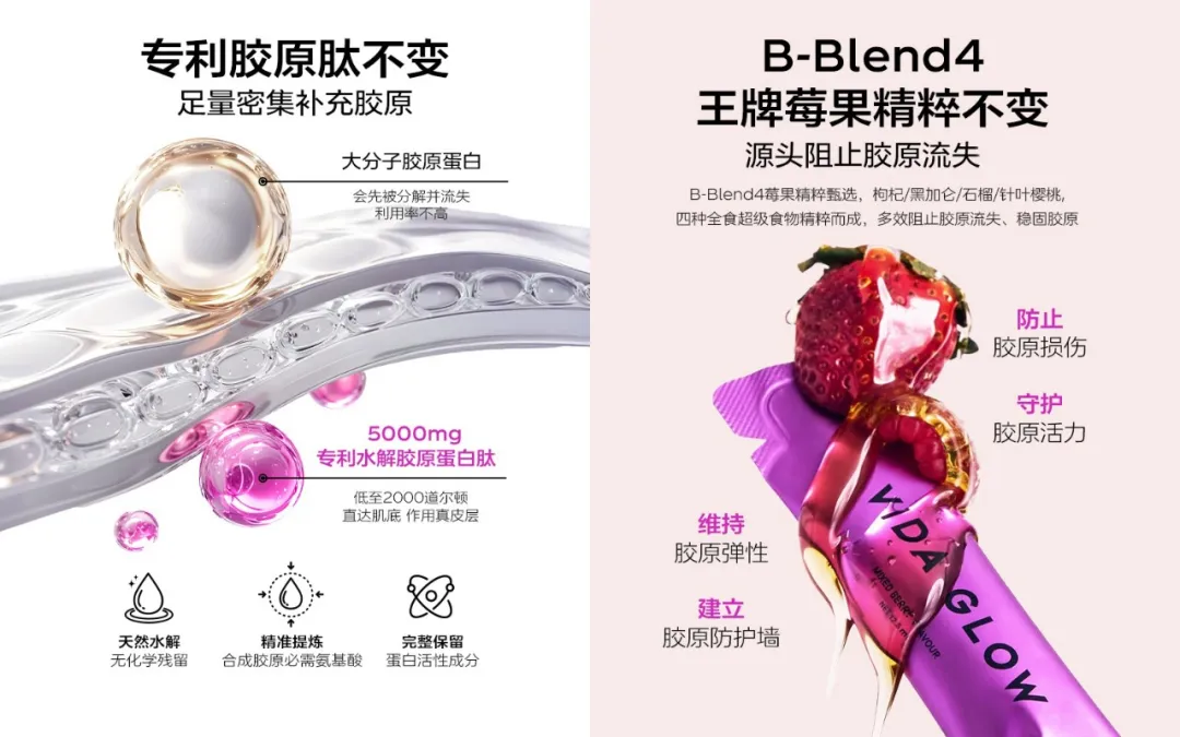 “近些年胶原蛋白肽行业有很多营销噱头,但Vida Glow始终坚持用前沿口服科技和优质原料,为消费者带来高品质的健康美丽体验。”在VTN首席选品官何志勇看来,对卓越品质的坚守是Vida Glow成功的关键因素之一。