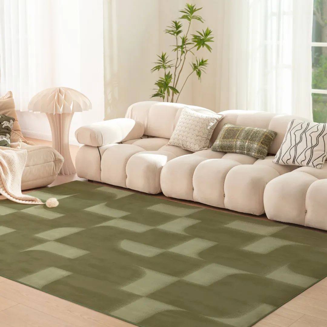 CCFARTS慕斯绒地毯拥有700g/m2的加厚绒毛,踩过之后,会像被晨露浸润的草地般回弹。而这款地毯的秘密在于其“双层机洗结构”——上层OEKO-TEX认证的短绒可轻松撕下清洗,下层黄麻底防滑耐磨,即便有孩子打翻果汁或宠物抓挠,也只需拆下上层丢进洗衣机。