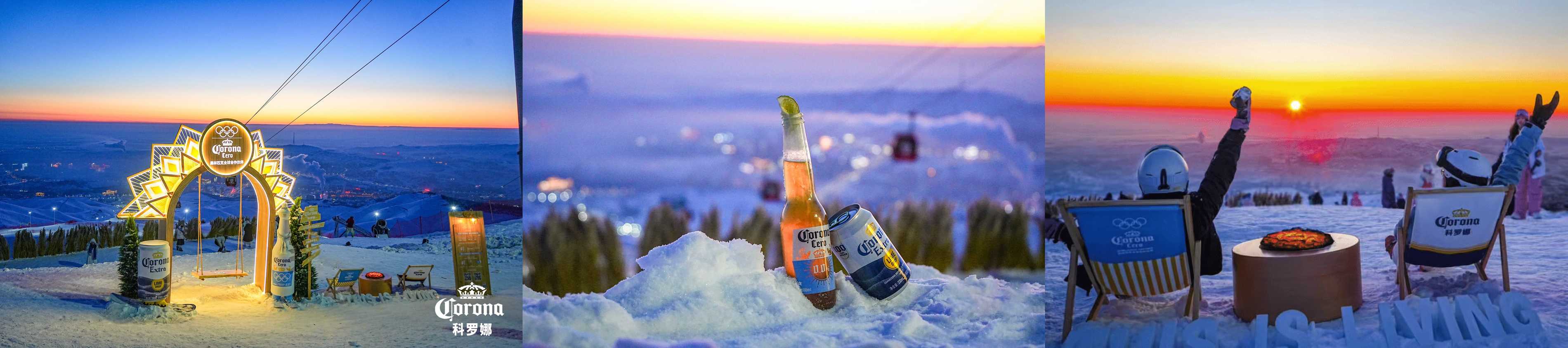 为将科罗娜品牌标志性的海滩生活方式进一步延伸至冬日场景,拓展和丰富消费者感知,科罗娜品牌在中国阿勒泰将军山特别打造了“就为这一刻”沉浸式日落体验,为每一位滑雪爱好者定格属于自己的最美冬日日落时刻,让惬意与松弛感在寒冬中依然延续。