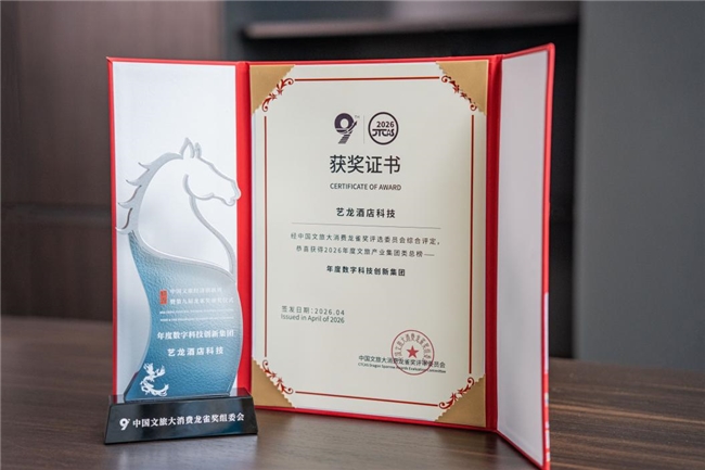 在此次盛典上,艺龙酒店科技凭借在酒店住宿数智化领域的突出贡献,从众多参评机构中脱颖而出,成功斩获第九届龙雀奖 “年度数字科技创新集团”?殊荣。这一荣誉不仅是对艺龙酒店科技数字科技创新能力的行业权威认可,更是对其持续推动住宿产业数智化转型的高度肯定。