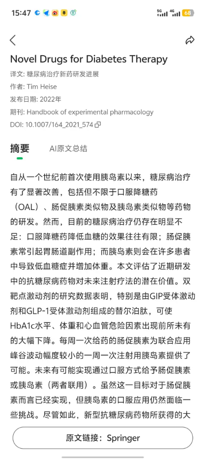 为验证这一特性,《新智核》开展了实测。在搜索框内输入“2024-2025年关于糖尿病新型治疗药物的研究进展”这句话,系统很快就返回了一系列高度相关的文献,而且每个核心观点都清楚标明了出处,从搜索到查证形成了完整的循证闭环。