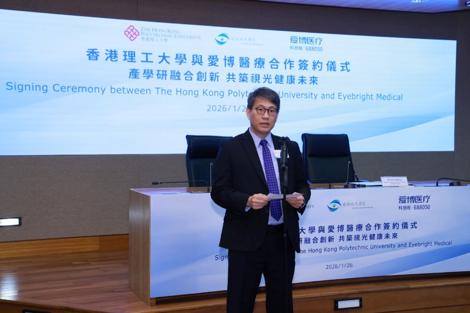 赵汝恒教授表示:“理大一直致力于推动科研创新及促进产学研深度融合。此次与爱博医疗的合作,标志着我们在眼科视光领域的科研成果和技术转化迈向新里程。双方在研发、临床转化及人才培养等多方面紧密协作,不仅能加速创新技术的落地应用,更能为行业培养更多高素质专业人才。理大将充分发挥国际化平台和科研资源优势,携手爱博医疗共同推动大湾区及全球眼健康事业的发展,为促进科技交流与产业协同进步作出积极贡献。”