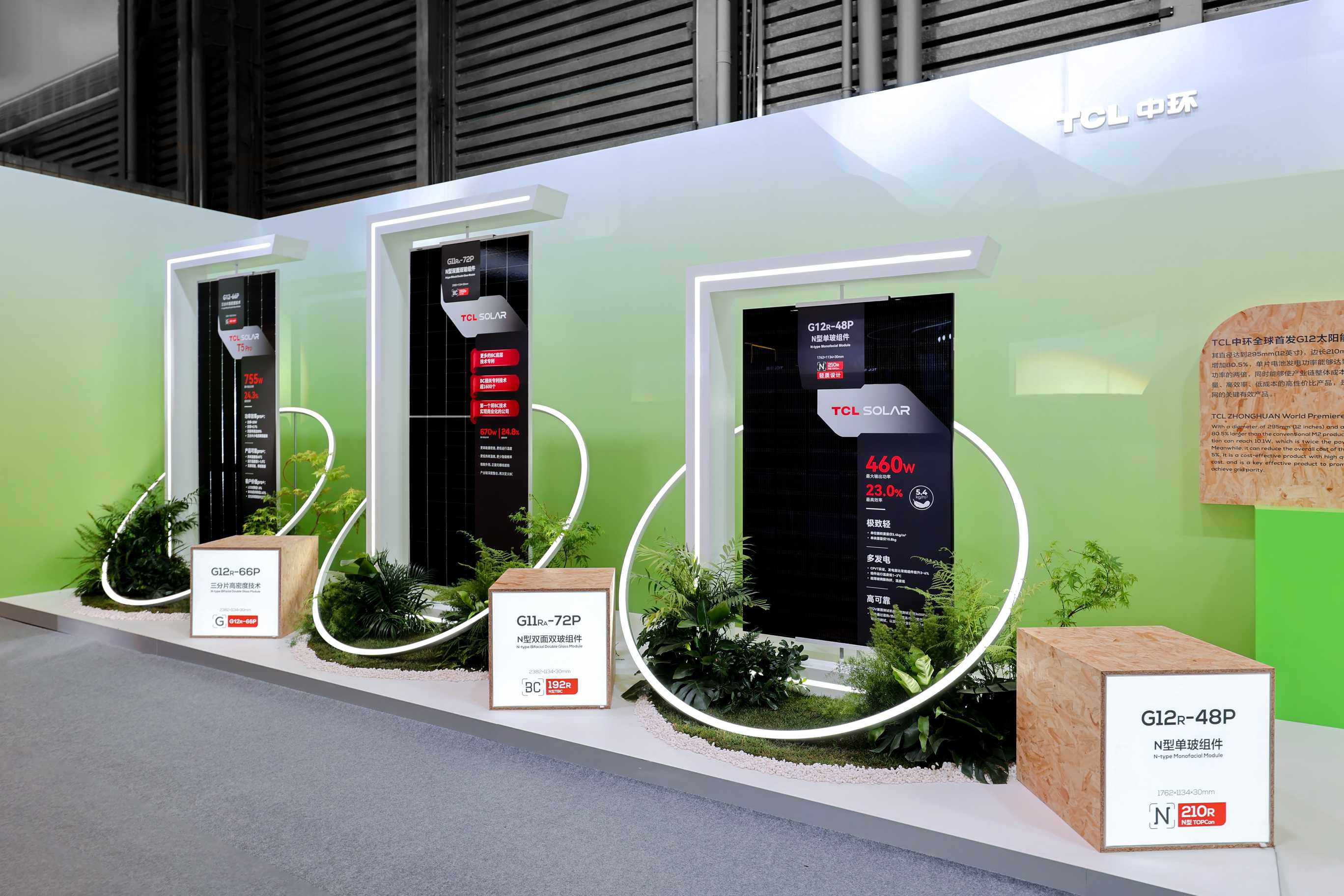 绿色低碳亦是本次展会关注的焦点之一。本次展会上,TCL通过TCL中环与TCL光伏科技两个主体,展示从光伏硅片、电池组件到光伏电站的全面协同产业生态。
